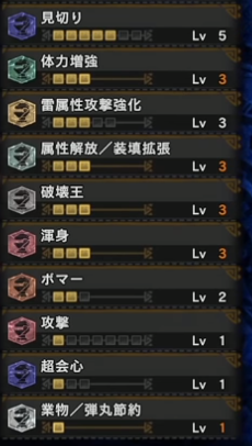 珠は、重撃×3、渾身×3、雷光×3、達人×2など。