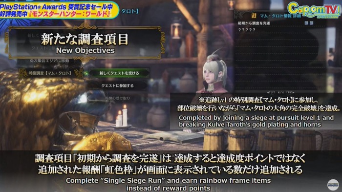 すると、「怒り荒ぶる状態で大角を破壊する」の調査項目が追加され、条件を達成すると報酬も増加するという仕組みです。