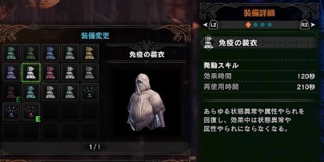 免疫の装衣は、あらゆる状態異常・やられを防御するという状態異常系の最強防具になっています。