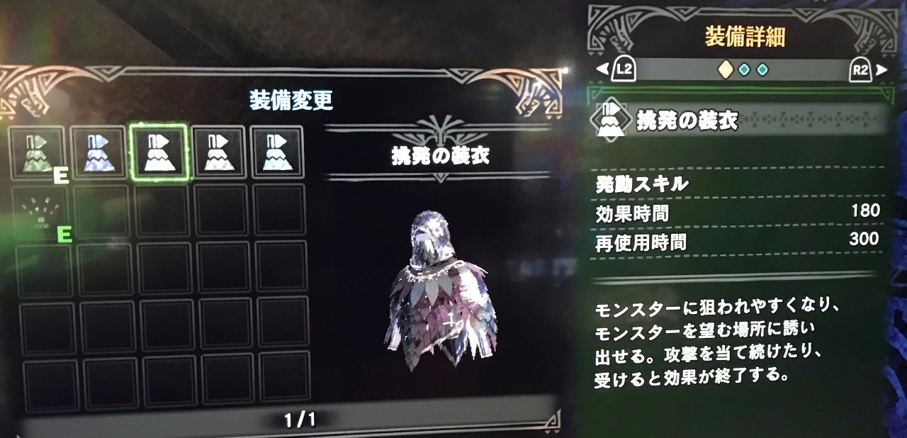 挑発の装衣は主にマルチで効果を発揮する装備です。