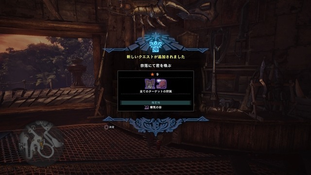 クエスト発生条件は、歴戦の個体の調査で、生態研究所の研究レベルマックスのモンスターが10種類を超えると発生するようです。HRは15以上。