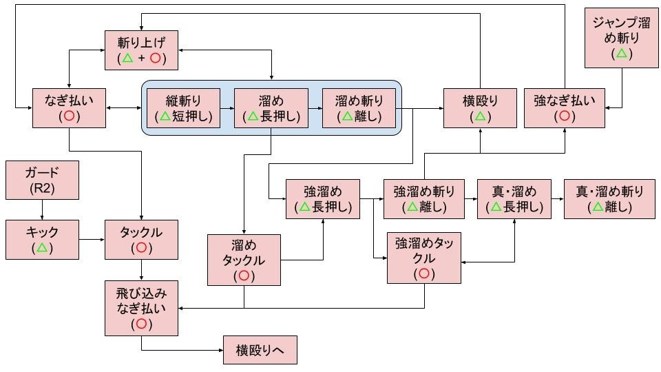 今作から△長押しで「溜め切り」→「強溜め切り」→「真・溜め切り」と連携コンボをつなげることができます。最速は△溜め→○→△溜め→○→△溜め。