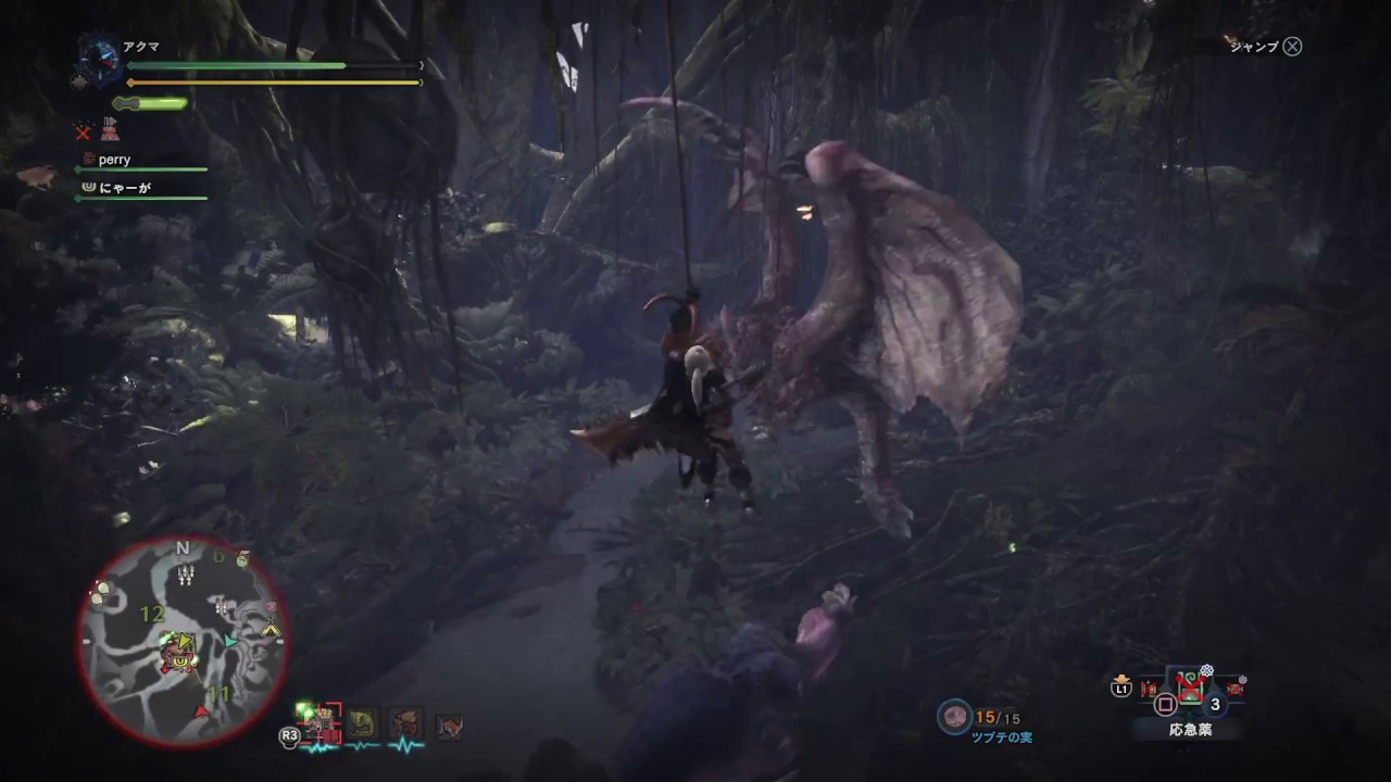 リオレイア・リオレウス・パオウルム―など飛んでいるモンスターは飛翔時にヒカリゴケ弾を当てると落下する。
