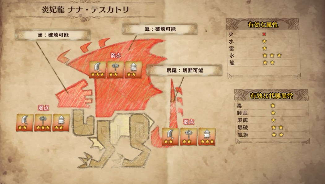 ナナテスカトリの有効な弱点は、【氷】属性。