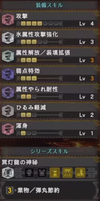 属性会心装備で、氷属性強化をつけています。