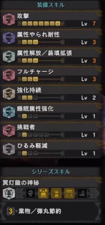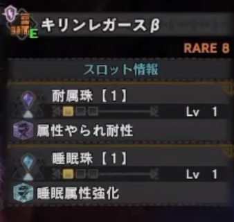 ラスト、睡眠属性強化がついていますが、こちらは拡散弾レベル3の間に使うことがあります。