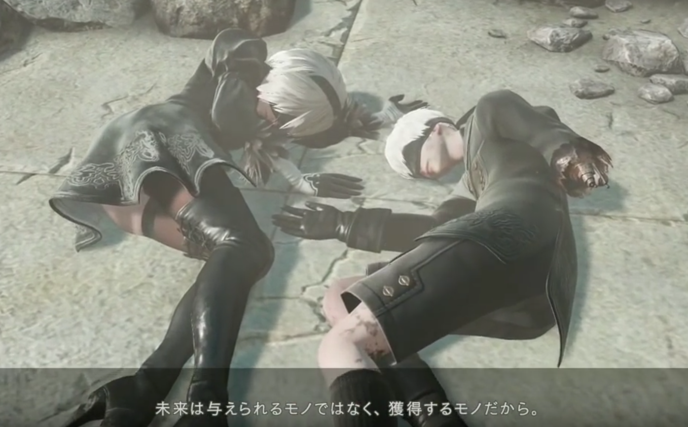 ニーアオートマタで最後、Eエンドで復活した2Bと9S、A2ですが、これは輪廻を象徴する本作の通り、また別エンドにつながる伏線だったと思いますので、
