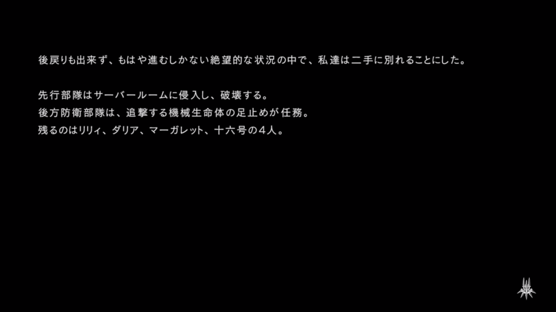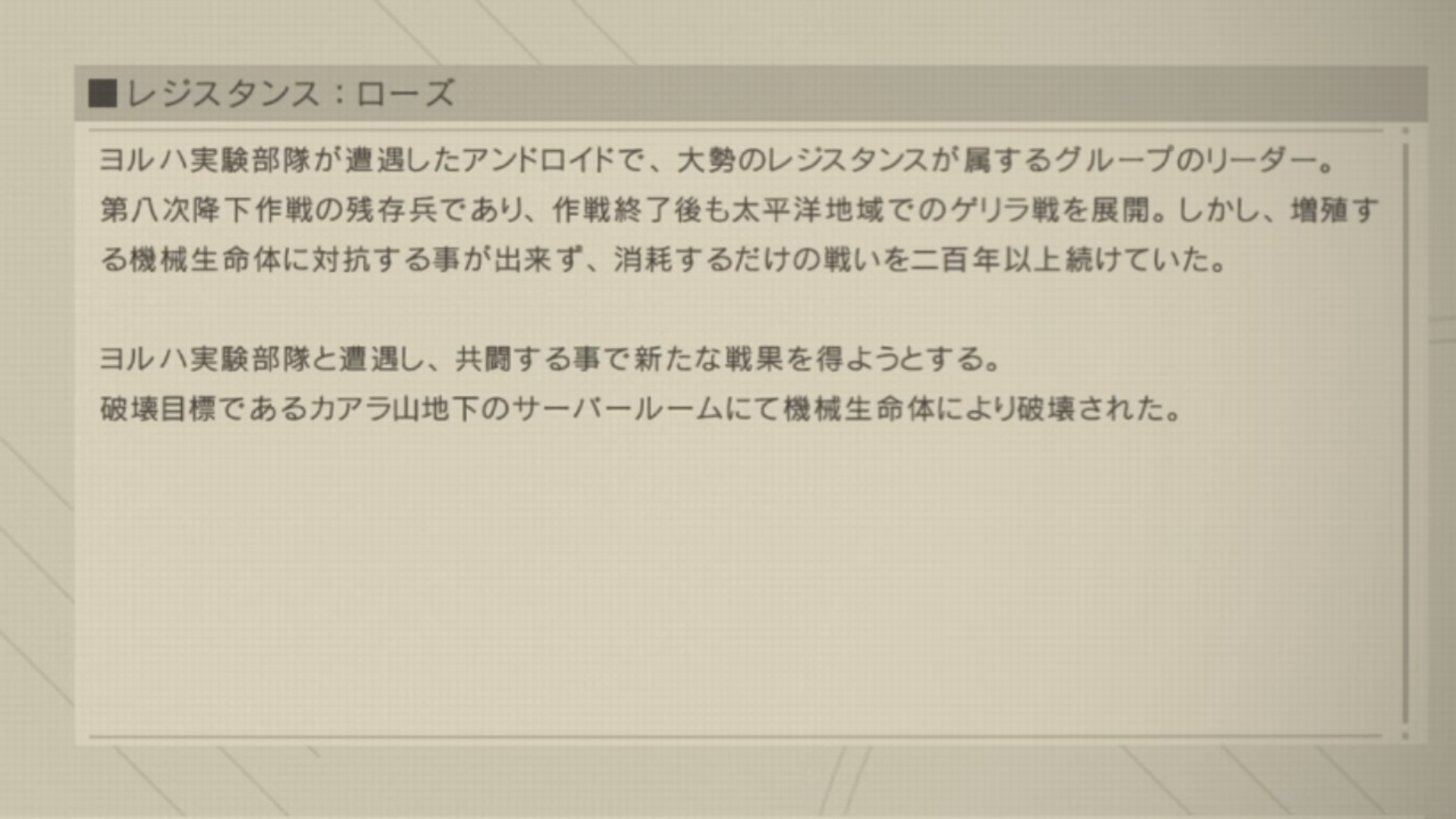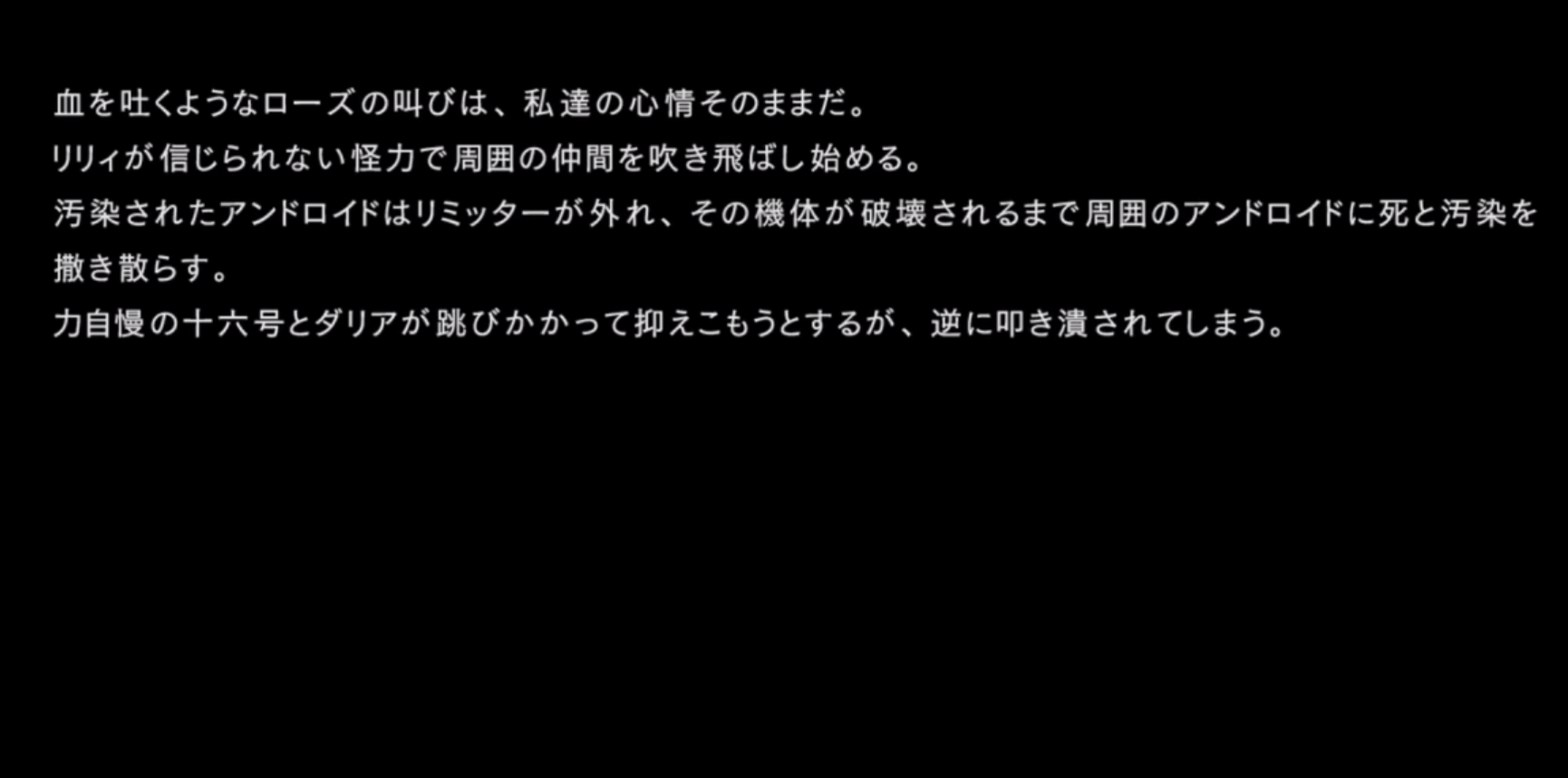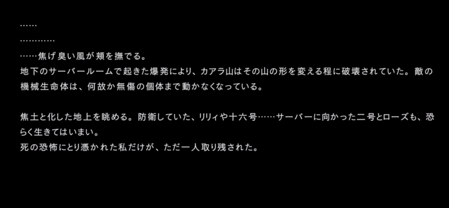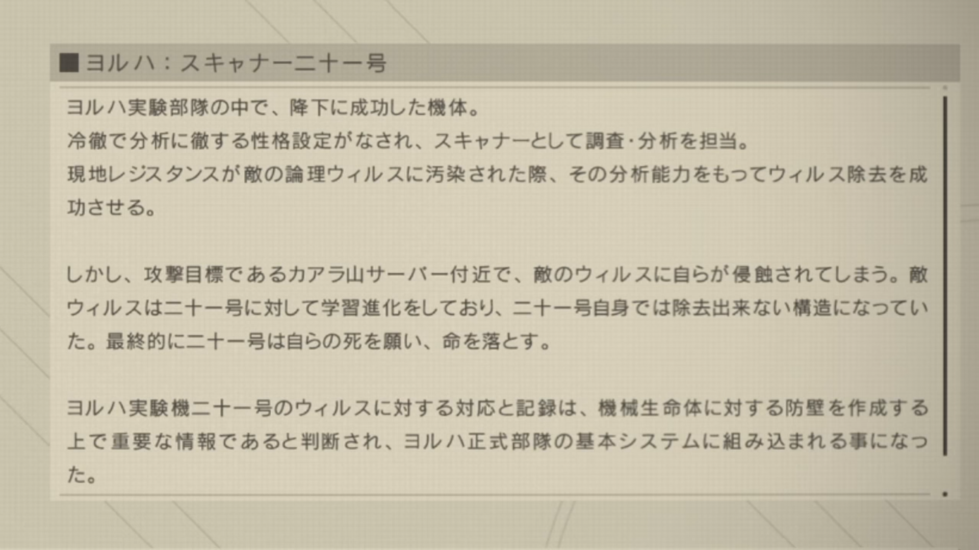 「本作戦の真の目的は各戦闘におけるヨルハ実験機体の反応を収集することであり・・・」