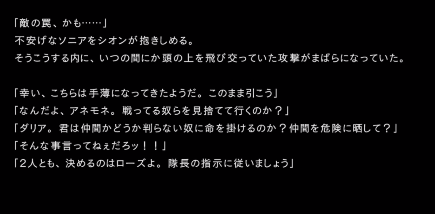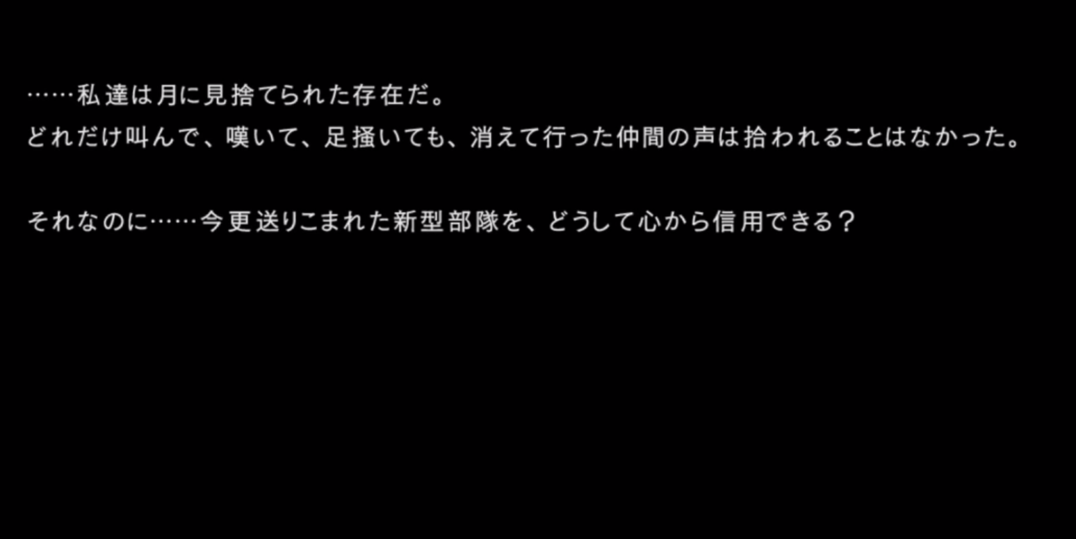 「不用心すぎる。私たちは見捨てられた存在だ。それなのに、今更送り込まれた新型部隊を、どうして心から信用できる?」