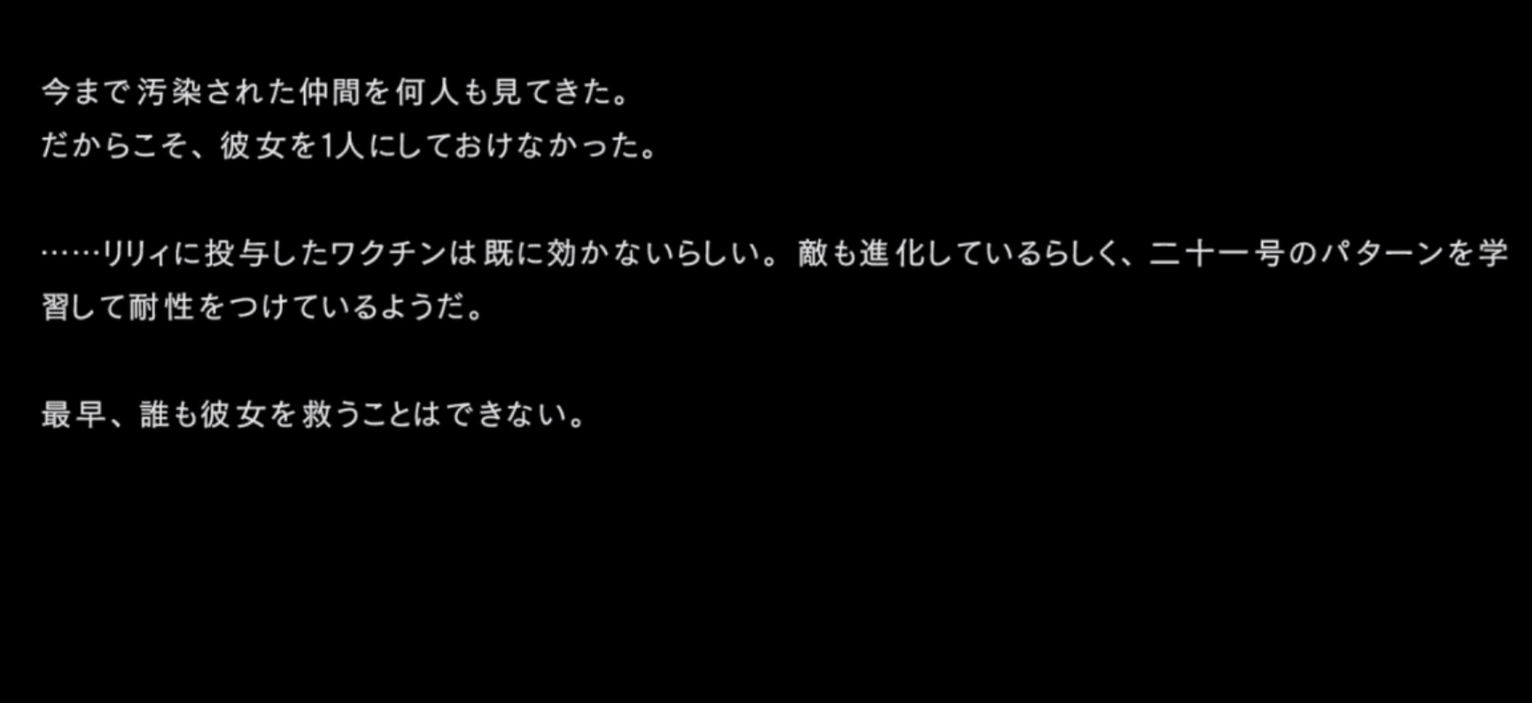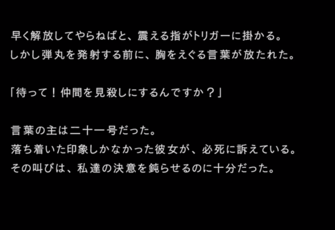 しかし、アネモネが残った理由は、二十一号が既に感染していると知っていたから。。。