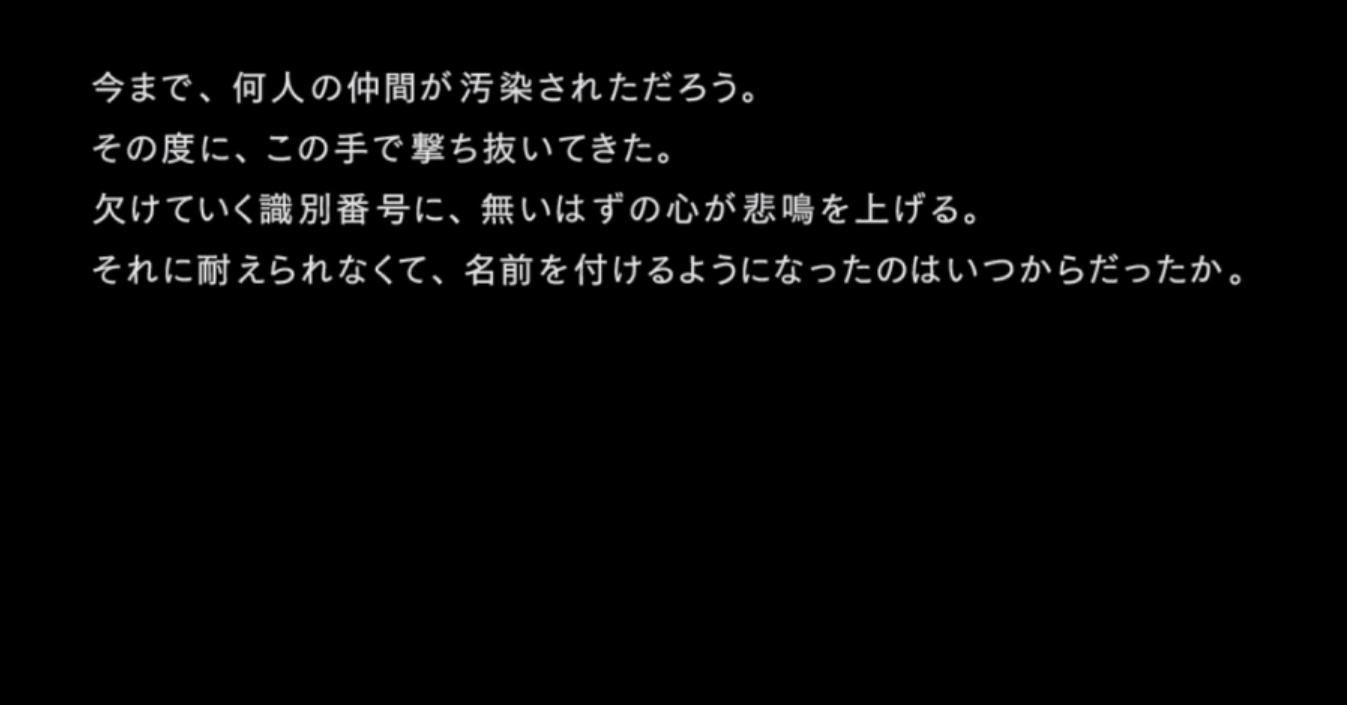 2BはE型として他の機体を壊す存在であり、だからこそ過去のつらさを理解していたのだろうし、いずれ自分が壊すことになる9Sに対してこの言葉を発したということが、とても深いです。。。