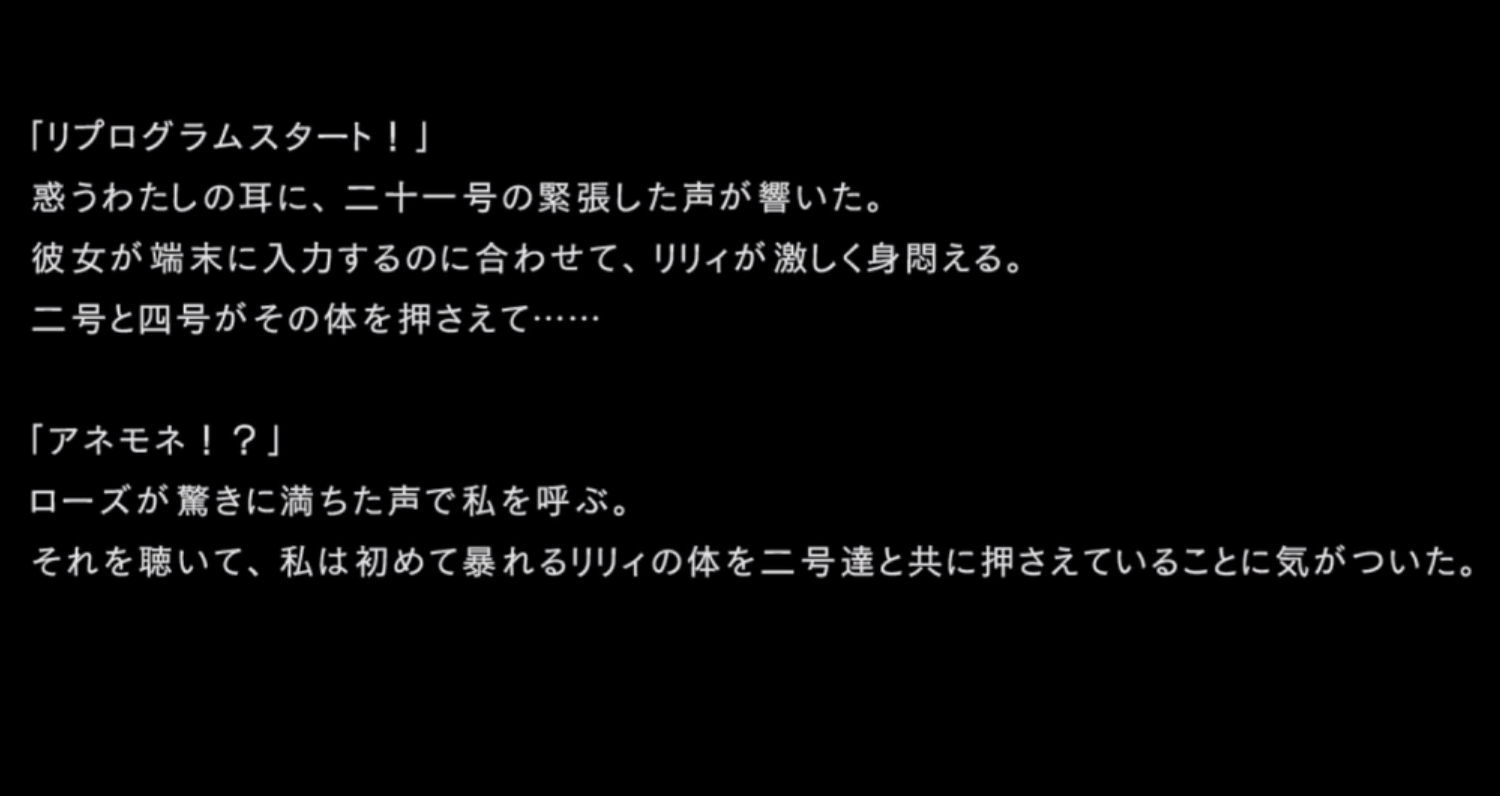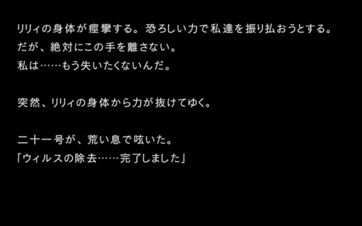 仲間のリリィが論理ウィルスに汚染され、自我を失いかけたとき、