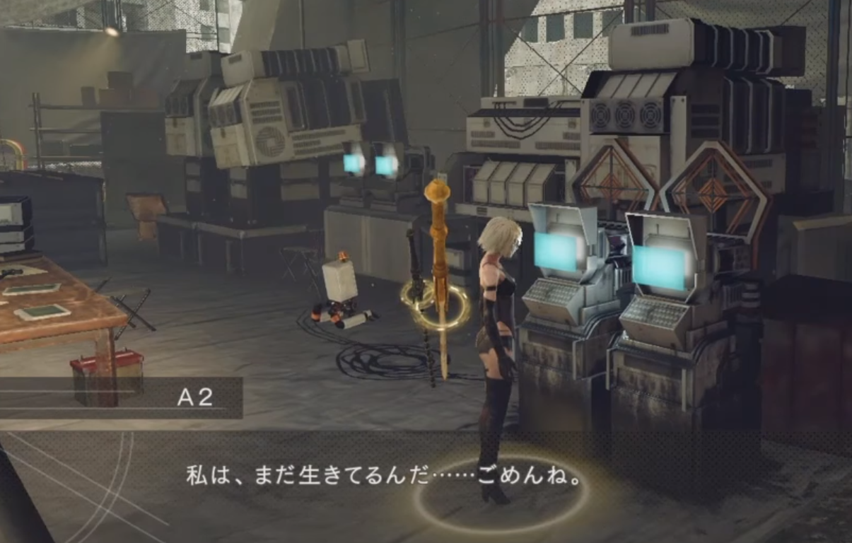 その後、その場所でおそらくヨルハの真実「実験部隊で処分されるはずだったという事実」の一部を知り、