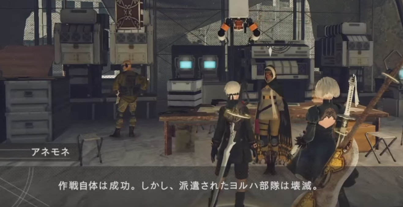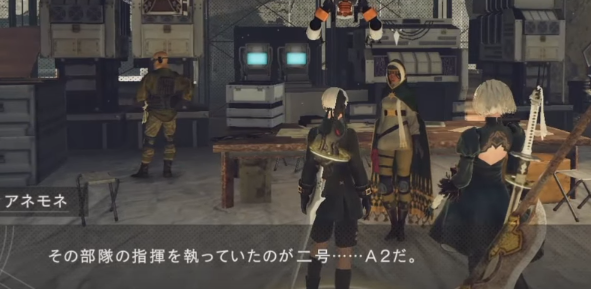 「真珠湾降下作戦は成功。しかし、派遣されたヨルハ部隊は壊滅。その部隊の指揮をとっていたのが二号・・・A2だ」と語るアネモネ。