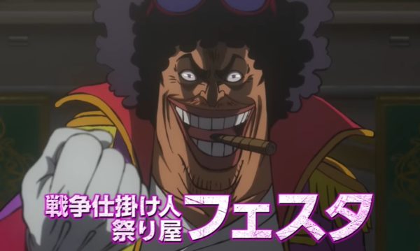 今作の黒幕であり、その目的は「ゴールド・ロジャーの「海賊時代宣言」に祭り屋として敗北を感じたフェスタが、もう一度ロジャーを超えるために、バレットとともに戦争の新時代を作ること」。