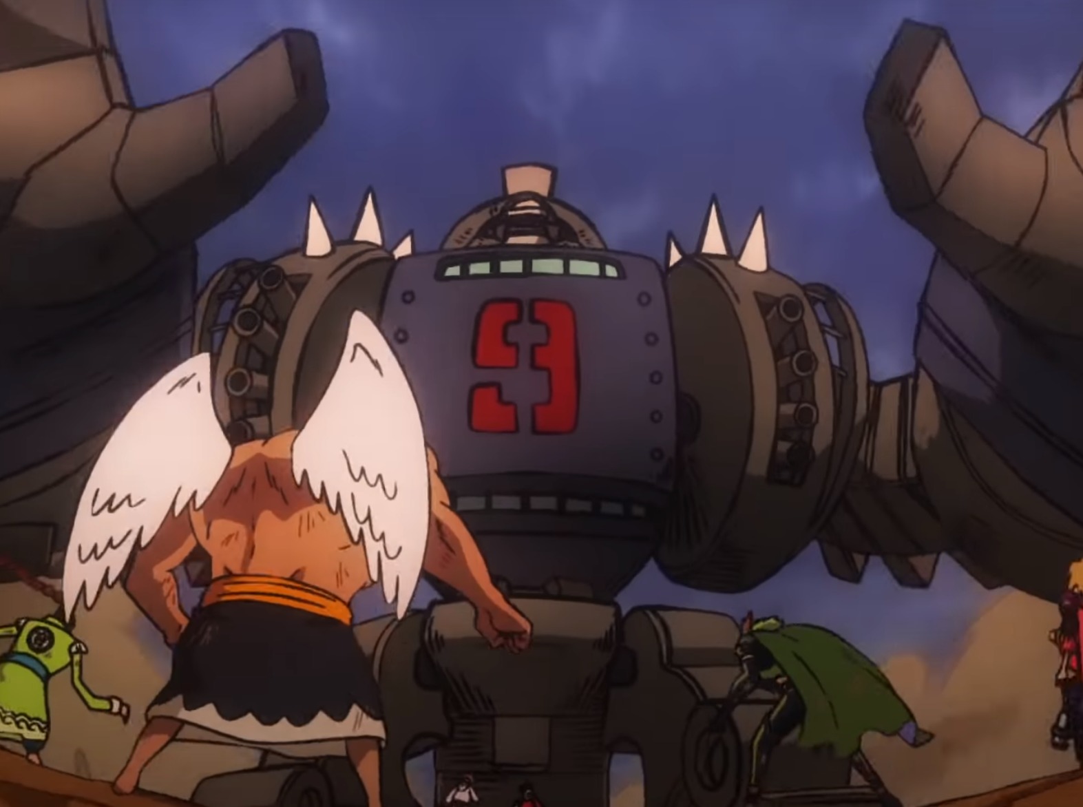 悪魔の実「ガシャガシャの実」の能力者で、まわりの鉄や武器など、あらゆるものを合体させ、変形させることができる「合体人間」。