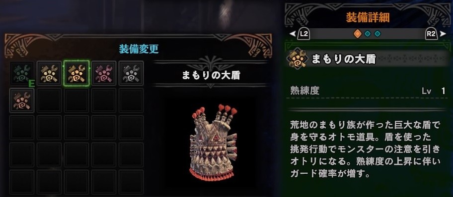 | 熟練度2 | 大盾挑発のガード成功率アップ、再使用時間短縮 |