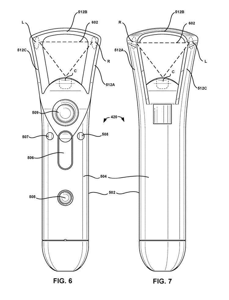 「CONTROLLER HAVING LIGHTS DISPOSTED ALONG A LOOP OF THE CONTROLLER」という名前で、PS Moveが進化したような形です。