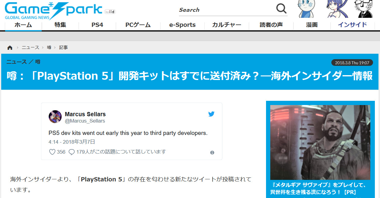 これまでもいくつかの噂の情報源となり、先日には『Call of Duty: Black Ops 4』の関連情報を囁いていたMarcus Sellars氏は、「PS5の開発キットが、今年の始めにもサードパーティ宛に送付された」とのツイートを投稿しました。