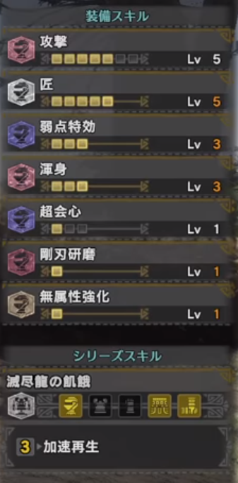 無属性強化はもちろんですが、剛刃研磨がついているのも特徴ですね。