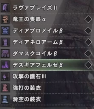 最強の無属性大剣「竜熱機関式改」を使った超火力装備に、潜伏珠【1】・心眼珠【2】をつけたり、潜伏の護石Ⅲを使って、補うのも良いと思います。