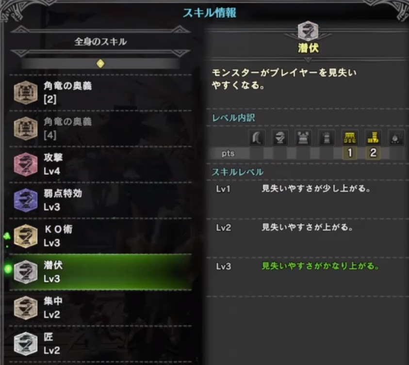 レベル3だと見失いさがかなり上がるので、見つかりにくくなる=攻撃しやすいということです。