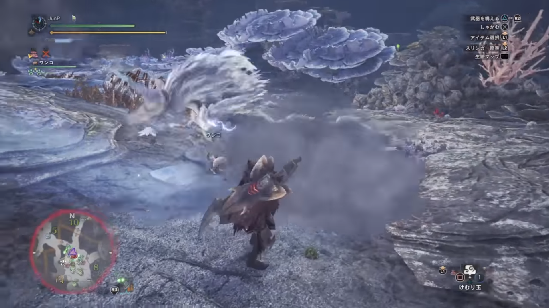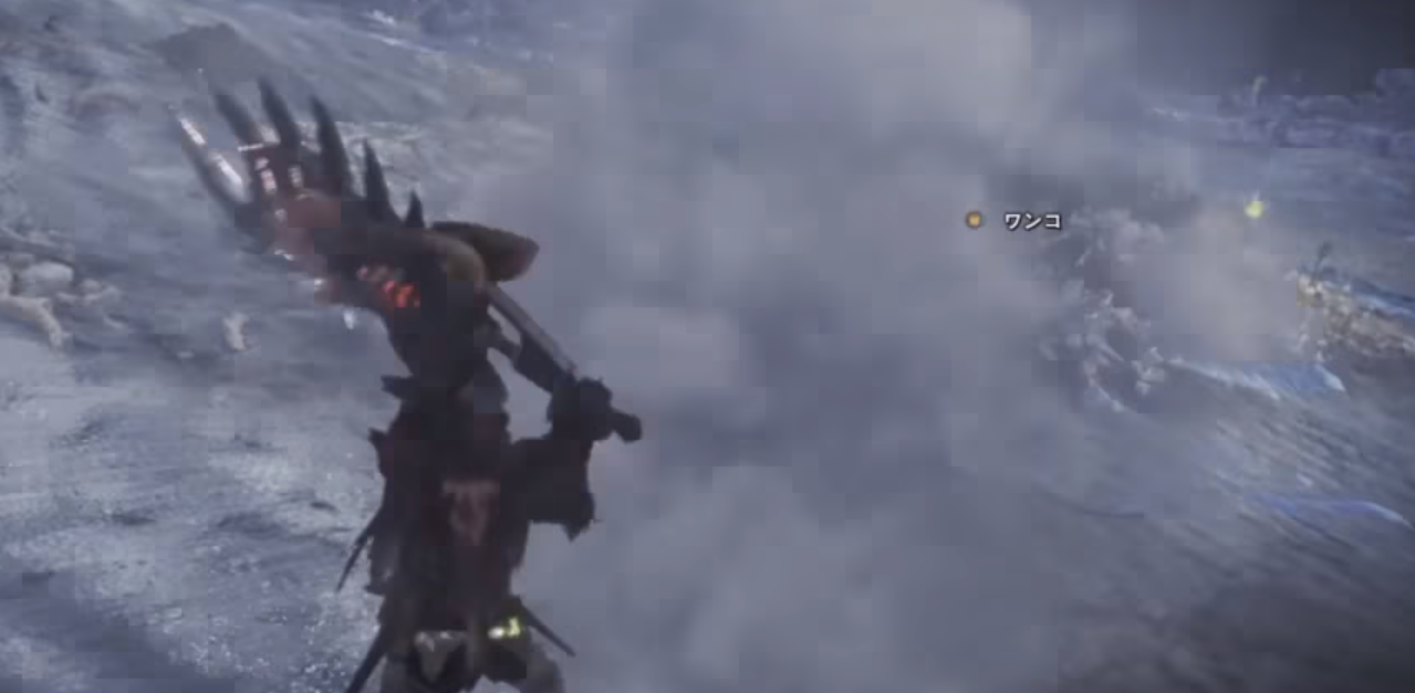 大振りのときを狙うと、モンスターがその場に留まってくれているので、ケムリ玉の効果を一番浴びせられます。