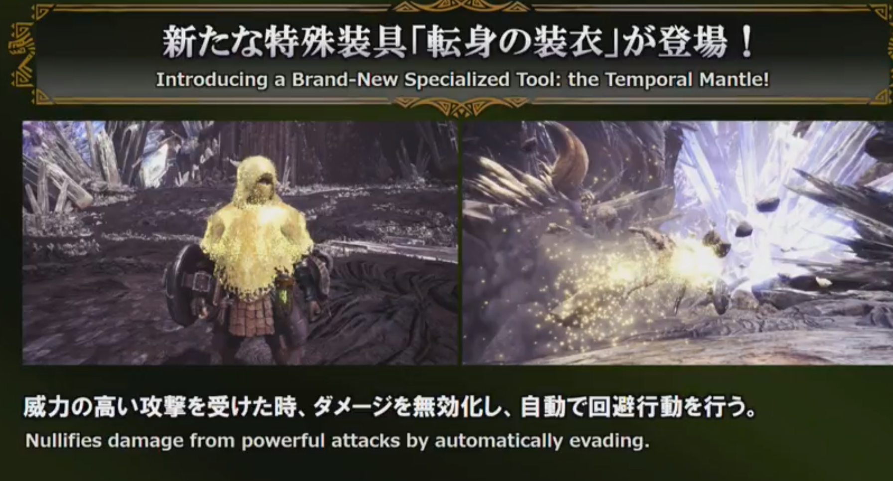 歴戦王キリンでは、一撃乙が確実なので、転身の装衣はそのために用意されたチート級装備と言えます。