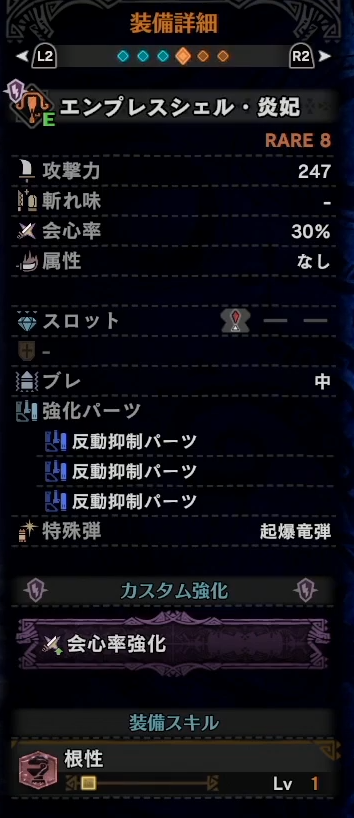 武器はエンプレスシェル・炎妃。