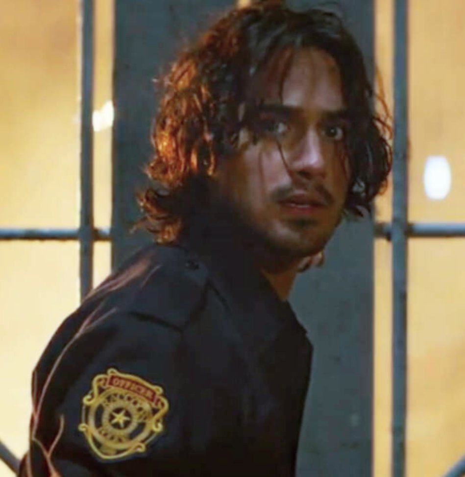 原作ではラクーンシティ警察署「R.P.D.」特殊部隊「S.T.A.R.S.」のアルファチーム隊員ですが、映画ではS.T.A.R.S.かどうかは言及されておらず、クレアと同じくラクーンシティの孤児院出身の警察官という設定になっています。