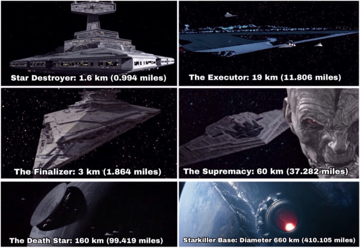 デススターはすっごく大きいイメージですが、エピソード6の最大級のものが、直径660キロとのこと。