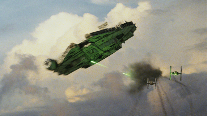 レイア、レイ、フィン、ポーなどレジスタンスを載せ、宇宙へと飛び立ったファルコン号。