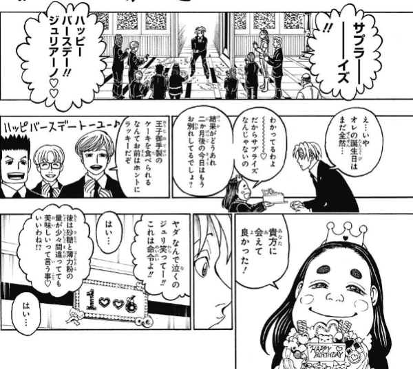 しかも、ジュリアーノの誕生日でもなんでもなく、ハッピーバースデー(つまり信者として生まれ変わったことを示唆)。