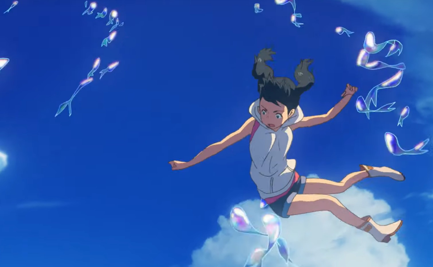 気が付くと、陽菜は空高くから落下しており、そこを透明な魚のような生き物が泳いでいました。