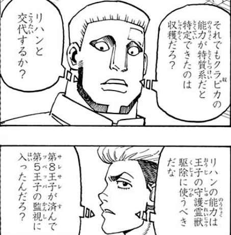 リハンのプレデターは念能力を食べるもので、すでにこれによってサレサレ王子の守護霊獣が食べられ、始末されました(対守護霊獣としては最強の能力)。
