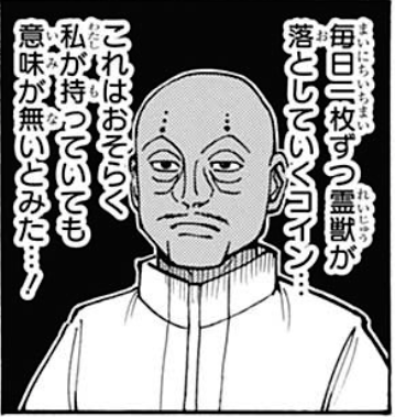 彼には念獣が見えていますが、そのときに2枚目のコインをもらいました。