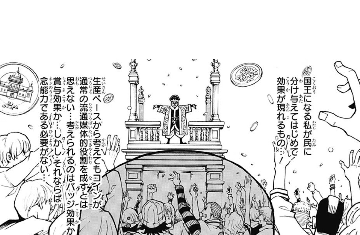 チョウライや側近は念について全く知識がありませんのが、口から落ちてくるコインだけは認識できます。