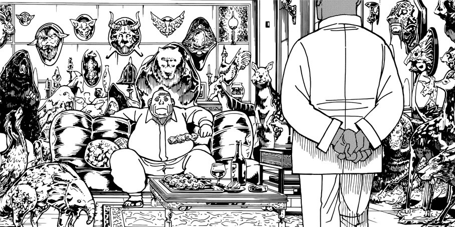 さらに、チョウライはこの念能力について知るために、ケツモチのシュウ=ウ一家のオニオールに会いに行きます。