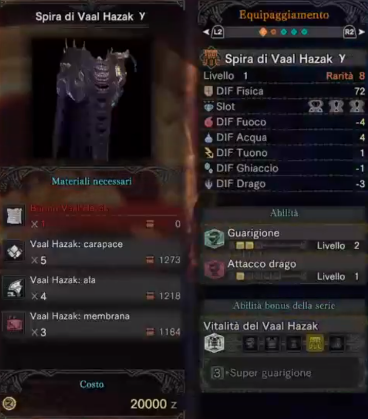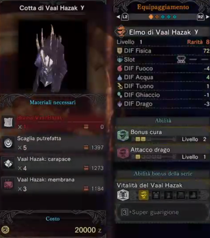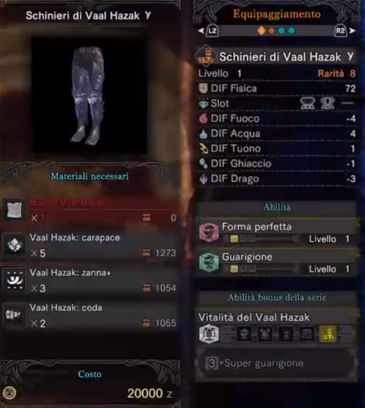 ちなみに必要素材ですが、普通のヴァルハザクで入手できるもののほかに、