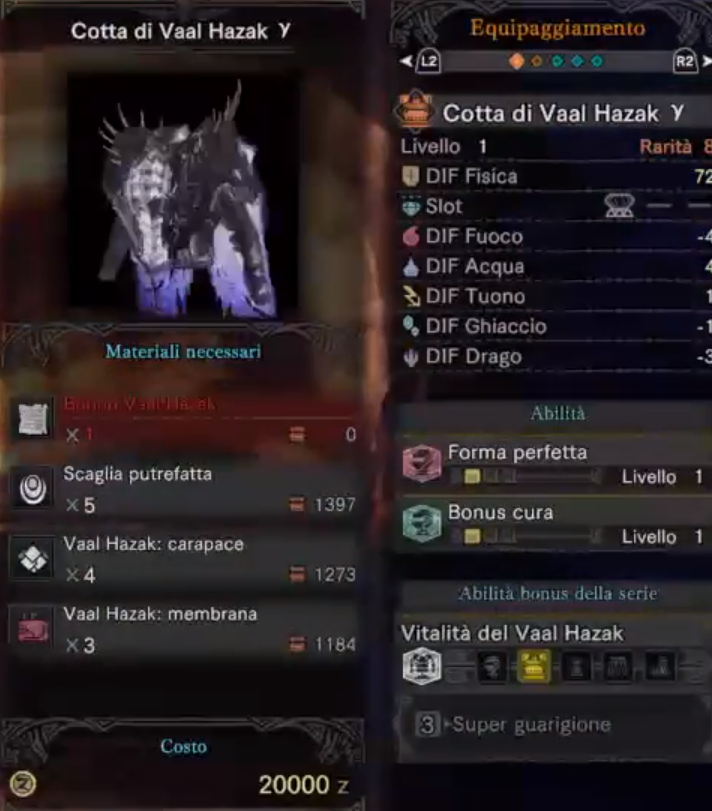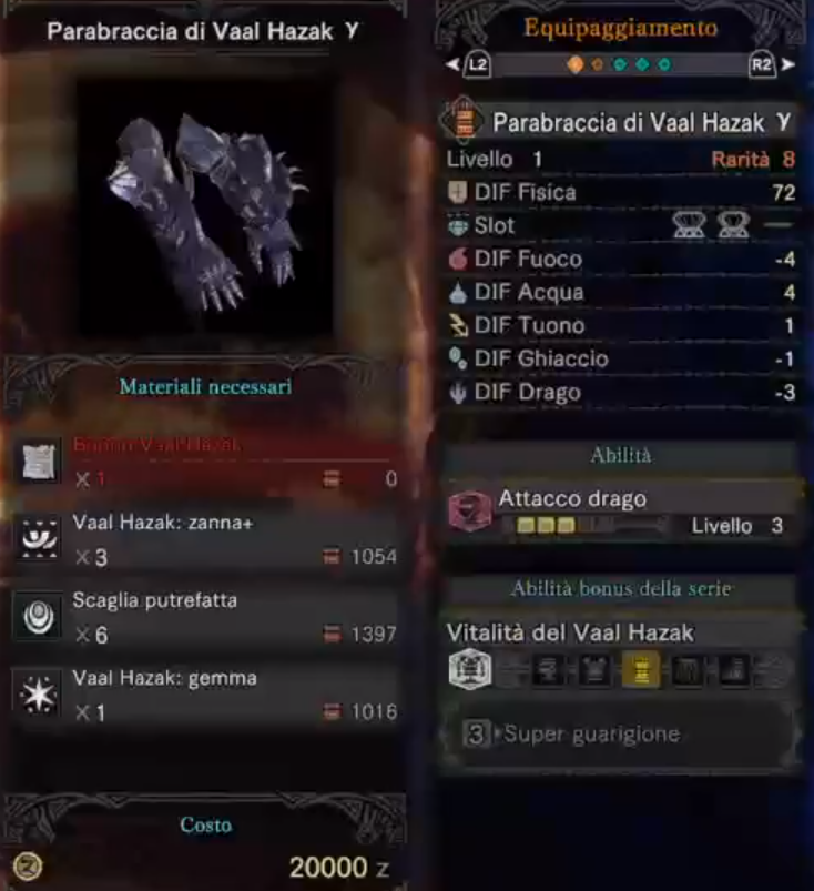ちなみに必要素材ですが、普通のヴァルハザクで入手できるもののほかに、
