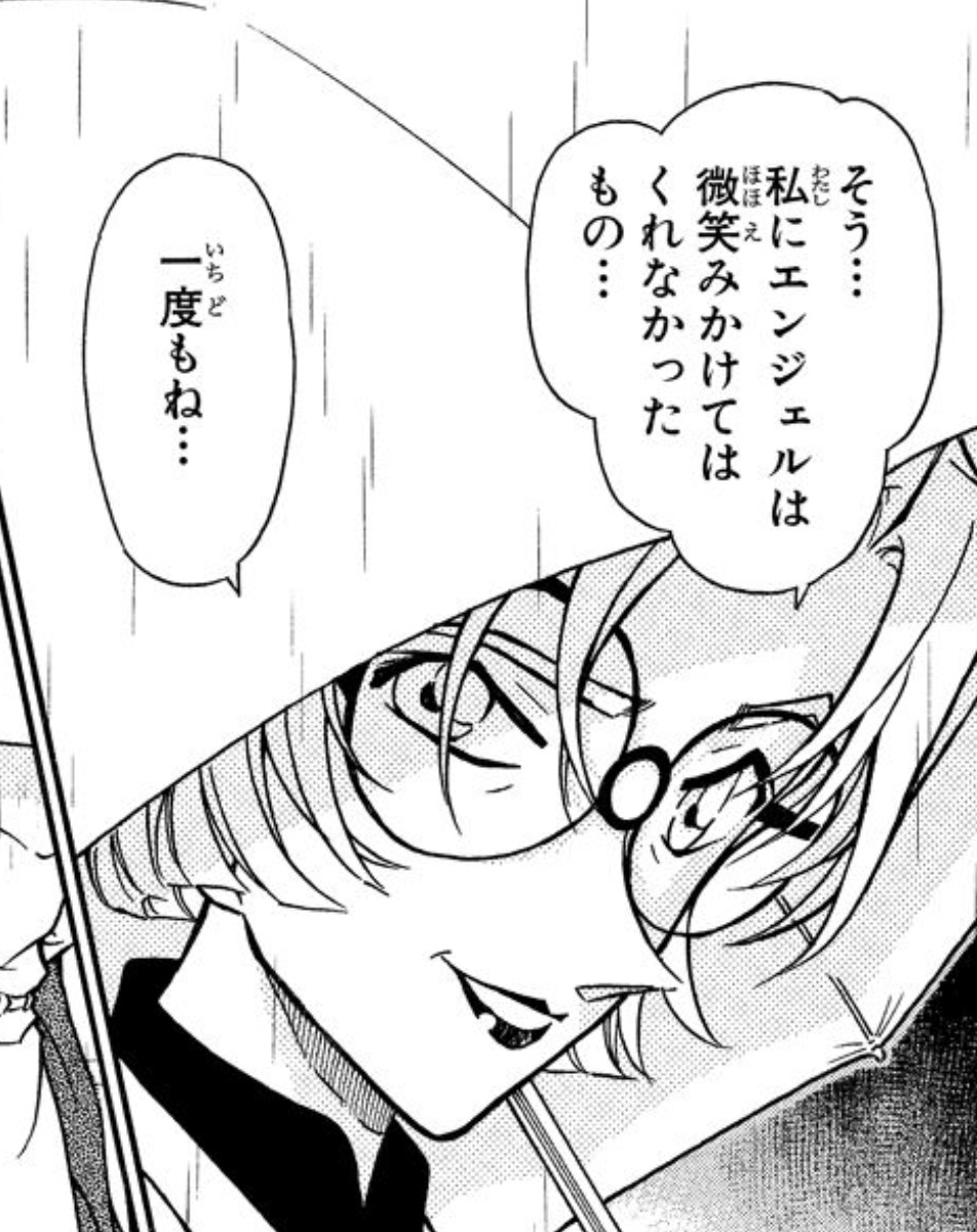その直前まで、「エンジェルは微笑みかけてくれなかったもの・・・」とこの世界に絶望していたベルモット。輝かしい経歴の裏で、彼女の瞳は絶望に染まっていた。