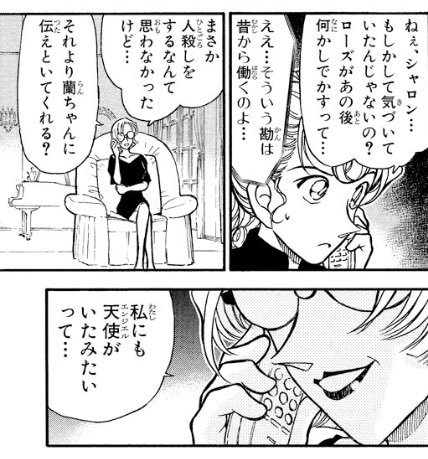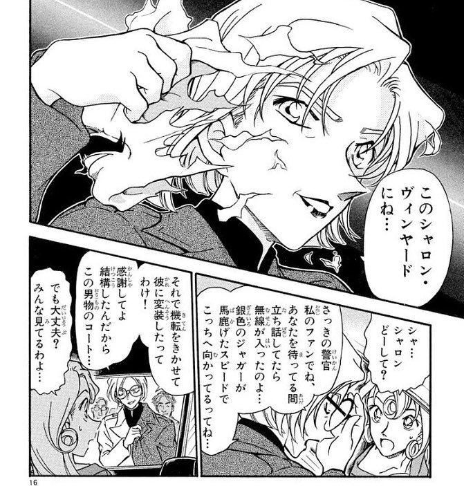 コナン君のお母さんである工藤有希子(37歳)はシャロンの女優仲間であり、同時に怪盗キッドの父親であるマジシャン黒羽盗一の弟子仲間でもありました(伏線)。File:350