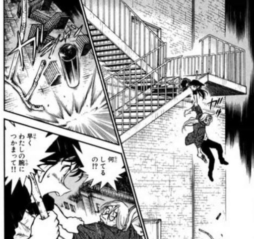 ベルモットは通り魔に変装していますが、目撃者として蘭の命を奪おうとしていた矢先に、手すりから落ちてしまい、蘭に偶然命を助けられます。