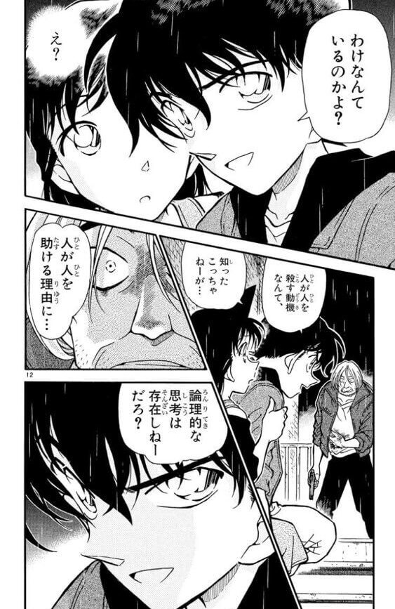工藤新一が「人が人を助ける理由に・・・論理的な思考は存在しねーだろ?」と諭し、彼女は衝撃を受けます。