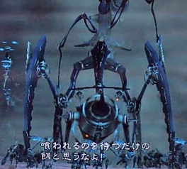 そして、機神界を壊滅させ、同時に巨神の上にいるハイエンターをテレシアへと変貌させて、巨神の上の生物を全滅→エネルギーにしようとします。