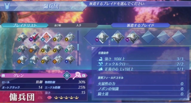 ブレイドは冒険に連れて行く以外にも、様々な依頼をこなす「傭兵」として派遣し経験値やキズナを上げることができます。