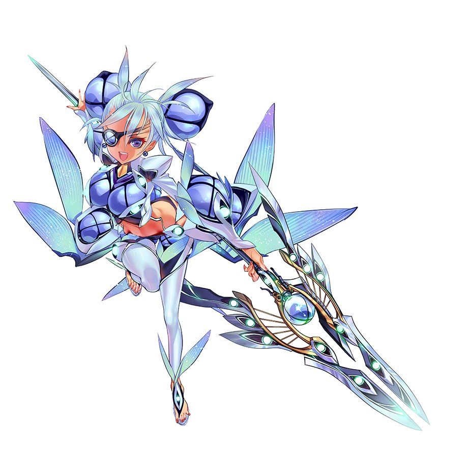 青い髪で眼帯をした明るい性格の少女。スケートのように滑りながら移動する。